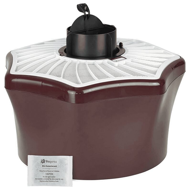 Trampa de captura basada en la generación de corrientes de aire y calor que impregnadas en el atrayente BG-Sweetscent logran elevados resultados en capturas. Uso en exteriores: lugares húmedos, protegidos del viento o entre vegetación.